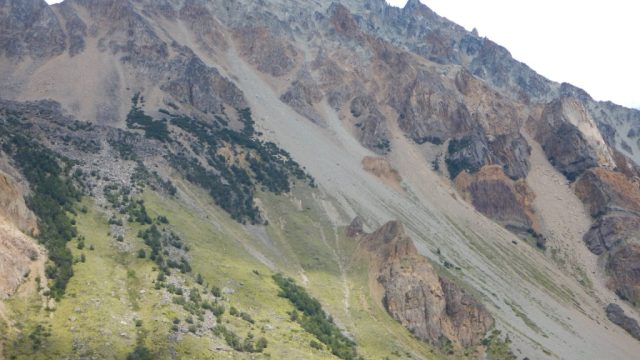 La nubosidad no nos dejó ver el San Lorenzo en toda su dimensión pero lo poco que nos mostró de su entorno alcanzó para deslumbrarnos: no hay que olvidar que tiene una altura de 3706 msnm y que nosotros estábamos a poco más de 1000 y muy cerca de su base.