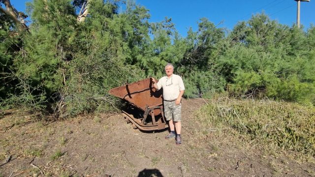 Cuando este atajo se acerca a la RP61, que une la RN3 y Arroyo Los Berros, aparece lo inesperado, el abandonado y gigantesco proyecto minero Mina Gonzalito..